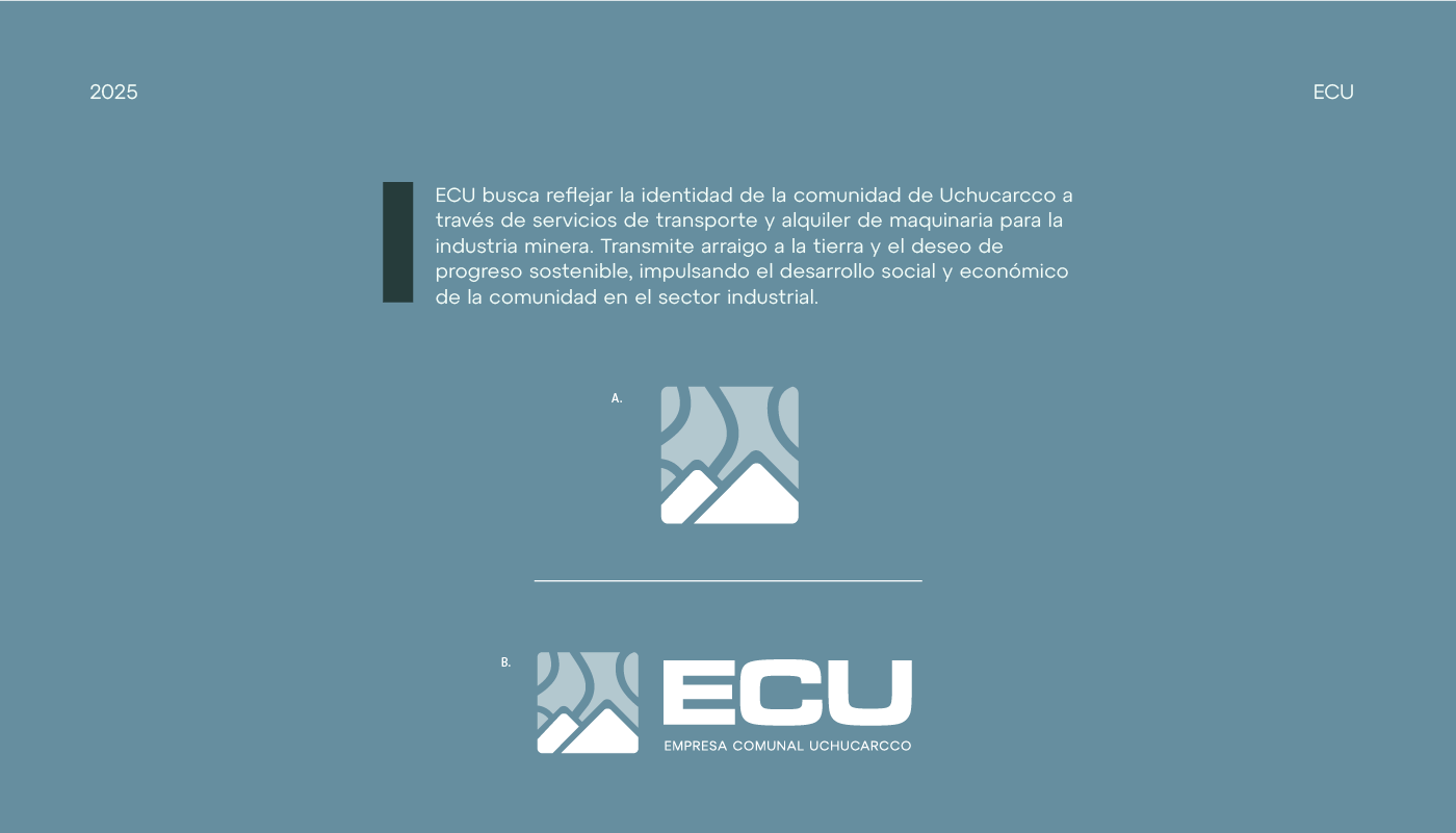 ECU busca reflejar la identidad de la comunidad de Uchucarcco a través de servicios de transporte y alquiler de maquinaria para la industria minera. Transmite arraigo a la tierra y el deseo de progreso sostenible, impulsando el desarrollo social y económico de la comunidad en el sector industrial.